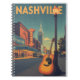 This Nashville-themed notebook features a vintage-style illustration that captures the city's famous music scene. The cover shows a classic street view with neon signs and a guitar leaning against a lamppost, celebrating the "Music City" heritage. This spiral notebook is a perfect gift for musicians, songwriters, travelers, or anyone who loves the soulful, retro charm of Nashville.