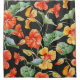 watercolor pattern nasturtium, bright orange flower pattern dark background