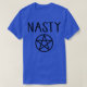 I give wanted to give this a 4 instead of a 5 because these Basic DARK T0shirts run unexpectedly SLIM or Narrow. Which is great if you do not have a potbelly, but I have a paunch. It isn't the shirt's fault that I've got a beer belly. The design and shirt itself is a quality cotton shirt. The color is more of a deep purple, but still a very pretty color. The Basic DARK T-shirts run a bit SLIMMER than the Basic Ts. The neck is a fraction narrower (or seems to be narrower) also. I'm a paunchy middle-aged woman and my neck is 12 inches (31cm) thick and the neckline fell about the same as in the photo of the man, and I had the desire to tug it a bit. So if you're a thick necked man or like loose shirts, be aware these are slimmer shirts. Once I get rid of my lockdown paunch it'll look great. The shirt washed well in cold water with no apparent bleeding. We don't have a dryer, so it hung dry. Did not shrink. Love the colors and the design. The design looks smaller on my shirt than it does on the model on-line. But still, it looks good on the shirt. The printing looks as it does on the model, just the size seems fractionally smaller. Washed garment in cold water, hung dry and design appeared unaffected.
