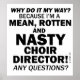 Why Do It My Way? Because I'm A Mean, Rotten, and Nasty Choir Director! Any Questions? Sometimes it's time to end the discussion and just get things done your way! See all our musical designs on on cups, mugs, tee shirts, sweatshirts, hats, and other gifts and clothing. Visit our TemperamentalMusician web site for more musical designs!