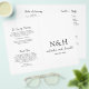 Modern folded wedding program (printed on thin printer paper and comes unfolded) featuring a simple and minimal black and white design with your monogram in a bold font along with your names in an elegant handwriting script and your wedding date.