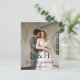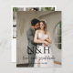 Modern budget wedding thank you card featuring a simple and minimal design with your monogram in a bold font along with "love and gratitude" in an elegant handwriting script and your names below. The back has a second picture along with your personalised thank you message.