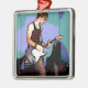 Abstract colour blocked boy and his guitar. In blue, sea green, and multi colour.