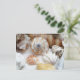 Blank seashells postcard. Cute tropical shells collected along the Gulf Coast of Florida decorate the front of this postcard. A spotted natica spiral is the focal point, with a little orange kitten's paw shell and white spiny jewel box shell also in the picture. The image is bordered by a thin line frame. Reverse is solid light tan colour. There is no text on this card. Use to say hello, or for any occasion.