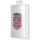 The product is a good size and came exactly as it was pictured. The lid is not attached to the flask, which could be dangerous on drunken nights... The print came out surprisingly well and looks very sharp. Would definitely recommend.