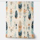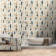 This stunning wallpaper has a Native American feather pattern in addition to polka dots, in tans, peach and blues against a cream coloured background.