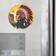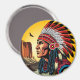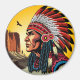 Native American Chief Portrait looking far away in a wild desert Landscape on Sunset Background, Original Vector Illustration Copyright BluedarkArt TheChameleonArt