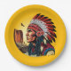Native American Chief Portrait looking far away in a wild desert Landscape on Sunset Background, Original Vector Illustration Copyright BluedarkArt TheChameleonArt