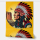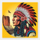 Native American Chief Portrait looking far away in a wild desert Landscape on Sunset Background, Original Vector Illustration Copyright BluedarkArt TheChameleonArt