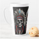 This striking features a detailed Native American chief skull wearing an intricate headdress. The design combines bold colours of black, white, and grey, with accents of red and a touch of blue for added vibrancy. The feathers on the headdress maintain a monochromatic palette of black, white, and grey, enhancing the powerful and intense look of the skull. This unique logo is perfect for those seeking a bold, cultural, and edgy design that stands out.