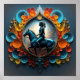 "A dreamlike quilling piece inspired by Native American culture. The silhouette of a woman riding a horse against a colourful background creates a mystical and evocative image."