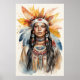 The art print features a beautiful Native American woman with a feather headdress and ethnic beaded necklace.
