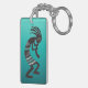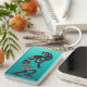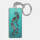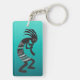 Native American Kokopelli flute player with gradient turquoise background keychain