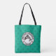 This All-Over-Print Tote Bag looks wonderful with this Haida design. The background is a subtle blue green with a salmon. Added is the text "British Columbia, Canada" in black letters.