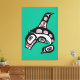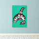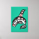 Gift your friend this canvas art with a beautiful Haida Killer Whale from British Columbia, Canada. The background is green.