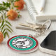Your keys are safe on this strong Acrylic Key-chain with a beautiful Haida Killer Whale from British Columbia, Canada. The background is green.