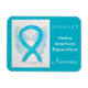 Native American Reparations uses a blue turquoise ribbon to support awareness for its cause. The custom magnet features an awareness ribbon guardian angel art magnet with the message "Support Native American Reparations Awareness". The blue turquoise awareness angel ribbon art can be customised with personalised messages to make great cause merchandise magnets for fundraisers, awareness gifts, or other special cause events or occasions.