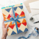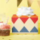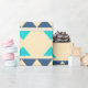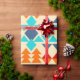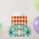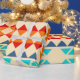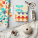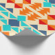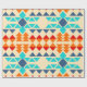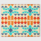 Native american seamless pattern of rhombus and triangle combinations in full color, blue, light blue, orange, red orange, cream background.