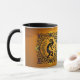 Southwestern Native American Sunset Kokopelli coffee mug. Vivid colour combination that you can customise background colours to match your taste. Kokopelli Native American Indian cultures. Attributed to ancient aliens or tribal art and inspired by cave and rock drawings. Customise your Southwestern Style Native American Sunset colours cup styles. Great gift idea.
