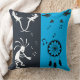 Reversible Abstract Cave Petroglyphs rainbow Kokopelli and desert and dreamcatcher in black and white with teal and steel blue on front and colours that you can change and customise to suit your room decor taste for both sides. Kokopelli is a fertility deity, a humpbacked flute player. Native American cultures. Attributed to ancient aliens or tribal art and inspired by cave and rock drawings. Customise your southwestern style Kokopelli ancient throw pillow colours, images and styles. Great gift idea for those that ponder the ancient history of the planet.