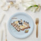 Native American Thanksgiving Personalised paper plate shows Native Americans sitting outside around a Thanksgiving table and the main course is a Pilgrim. As they bow their heads, one says, "Let us be thankful." It has a blue background, and the table and seating is made of split logs. A basket of corn sits next to them. But the Pilgrim is the main course. You can customise or personalise this funny Native American cartoon by adding your own text and images, and changing the background colour. See coordinating home decor items as well--they're customisable too.