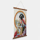 The polyester fabric displayed many wrinkles and several sharp creases throughout. At the bottom of the tapestry, I noticed a bulge in the fabric because it was not pulled tight enough before being connected to the wooden boards. It took me over an hour to spay water on the tapestry before putting it on an ironing board where I used a warm iron over a polyester cloth to remove the wrinkles and creases in the material. I was able to get out the wrinkles and creases that made that tapestry look as beautiful as its picture.