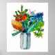 Colourful Australian native flower painting design of arrangement still life bottlebrush and eucalyptus Australian flowers.This beautiful colourful botanical design is from an original painting.