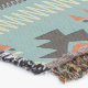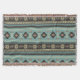 Native American / Tribal blanket inspired pattern features geometric designs. Palette: brown, orange, sky blue and cream white.
