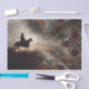 Transform furniture and commercial spaces with our premium southwestern decoupage paper. This heritage design features native-inspired geometric patterns and a horseback silhouette against a silver-tooled background. This design creates an elegant focal point perfect for southwest homes, cultural museums, or cowboy-inspired spaces.