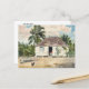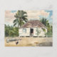 A postcard with the fine art watercolor painting by the American artist Winslow Homer (1836-1910) Native Huts, Nassau (1885). A tropical scene with a rooster in the foreground. Huts with roofs of straw and palm trees in the background.