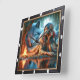 Experience native stillness, river's edge twilight calm. This timepiece captures a moment of serene beauty. Witness the gentle communion between a young, beautiful Native Indian woman and a majestic grey wolf, their stillness a reflection of nature's timeless rhythm. Delicate willow fronds brush the soft breeze, while the comforting glow of a campfire illuminates their peaceful haven. A flowing stream mirrors the ethereal beauty of their shared moment, carrying the scent of moss and damp earth. Feel the quiet magic of a moment beyond time, and craft your own story with our Design Tool. Personalise the numerals and hands to create a unique masterpiece, a sanctuary of peace in any space.