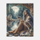 By the tranquil water's edge, a Native Indian woman sits gracefully, draped in traditional garments, as two majestic wolves keep a watchful eye. The full moon casts a gentle glow, illuminating the serene wilderness surrounding them.
