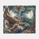 Native woman reflecting with two wolves fleece blanket