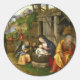 Nativity by Lorenzo Leonbruno da Mantova c1515. Manger scene depicts Mary holding baby Jesus while angels watch with folded arms. Pretty background scenery with angel and shepherds approaching the Holy Family.
