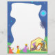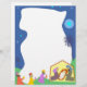 The three kings visiting the baby jesus laying in a manger with his parents Mary and Joseph watching on. Lovely Christmas letterhead page border design.