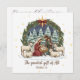 Celebrate the true meaning of Christmas with a beautifully illustrated card featuring the Holy Family beneath a radiant star, encircled by a festive wreath. The design includes Matthew 1:21 and the message “The greatest gift of all,” blending reverence and seasonal warmth. The reverse side reads “Merry Christmas” along with the sender’s name, making this a customizable and heartfelt keepsake.