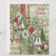 The design is built on a stunning collage of rich reds and varied greens, combining patchwork squares on the left with vintage sheet music on the right. The center features an abundant arrangement of red and creamy white poinsettias, snow-dusted foliage, and delicate white swirls.