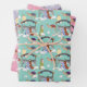 Nativity paper with a pink, purple, and blue background, featuring, Mary, Jesus, Joseph, Shepherd, Star, Angel, Donkey, Sheep
