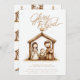 Invite your guests to a heartfelt nativity celebration with this beautiful watercolor invitation featuring Baby Jesus, Mary, and Joseph. The design includes a manger and a guiding star at the top, symbolising the holy night. Soft, neutral tones and elegant typography make this the perfect invitation for your holiday gathering.