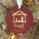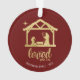 Celebrate the birth of Jesus Christ. Lovely gold coloured silhouette of a nativity manger scene with Mary, Joseph and Baby Jesus. Shining star to lead the way. Wonderful bible quote from John "Loved" in typography style design. The perfect holiday Christmas ornament to celebrate the lord Jesus. Personalise with name and date to create a memory keepsake.