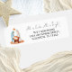Nativity Scene All Is Calm All is Bright Return Name and Address. A modern illustration of Mary, Joseph and Baby Jesus in his manger is to the left and a line from the carol Silent Night in an elegant set script is above your return name and address details to the right.