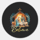 Nativity Scene Believe Christian Xmas Family Merry Classic Round Sticker