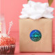 Nativity Scene in simple blue, green and black with white text for you to customize and white stars. Round sticker.