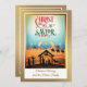 Celebrate the true spirit of the season with this elegant and modern Nativity scene Christmas card. The design features a serene silhouette Nativity with Mary, Joseph, and baby Jesus in the manger, surrounded by animals and shepherds. The Three Wise Men on camels are seen approaching under a guiding star, while angels watch over the scene.