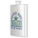 The product is a good size and came exactly as it was pictured. The lid is not attached to the flask, which could be dangerous on drunken nights... The print came out surprisingly well and looks very sharp. Would definitely recommend.