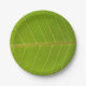 Natural Green Leaf and Light Yellow Line Design Paper Plate