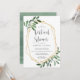Planning a virtual shower instead of an in-person event? Bring loved ones together with this beautiful bridal or baby shower invitations with a woodland foliage theme. Design features grey lettering framed by a faux gold geometric border and rich green watercolor foliage, leaves, and white berries. A modern choice in a natural colour scheme for boho or nature themed bridal or baby showers, you can use the template text fields to add details of your virtual gathering, including video chat or videoconference link, registry information, and mailing address.