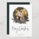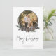 Merry Christmas signature script. Rustic nature watercolor pine branches, pinecones and berries, hoop photo frame. Coordinating pine green colour backing.