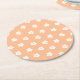 Natural Preppy Peach White Hippie Flower Pattern Round Paper Coaster
