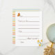 Send a message of thanks after birthday parties or special events with this nature inspired flat stationery card featuring simple fill in the blank spaces and prompts to help teach kids the art of thank you note writing. Charming illustrated, yellow, bill ball craspedia flowers bloom on the front with a small ladybug and butterfly detail while the backside features a colourful rainbow stripe of retro inspired and gender neutral colours like mint green, sky blue, rust, golden yellow and coral red on a creamy off-white background.